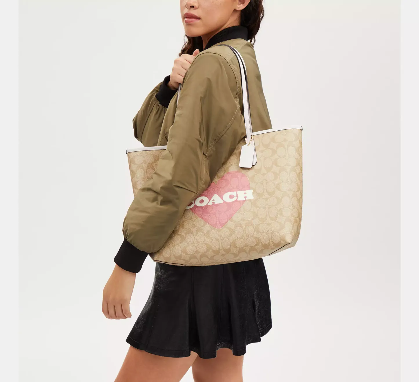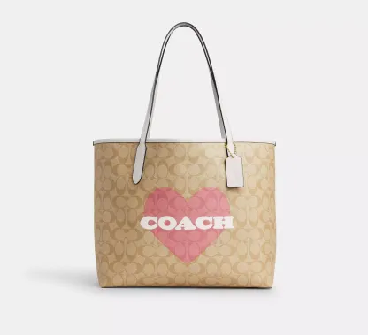 City Tote In Signature Canvas With Heart Print