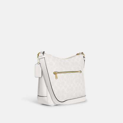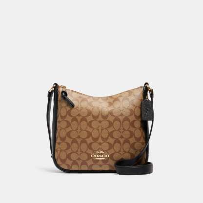 Signature coated canvas and refined pebble leather Inside multifunction pocket Zip-top closure fabric lining Outside zip pocket Adjustable strap with 21 drop for shoulder or crossbody wear 10 1/4 (L) x 9 1/2 (H) x 2 3/4 (W) Style No. C1649