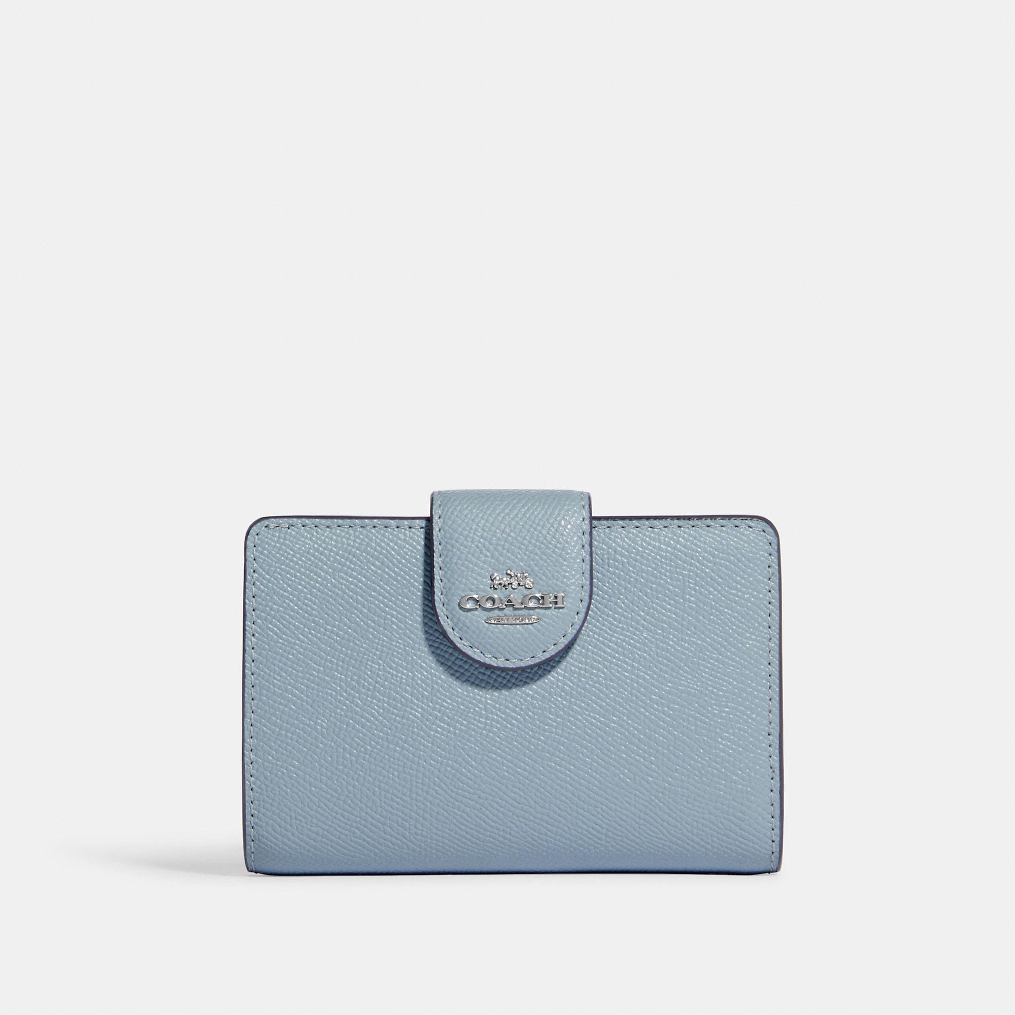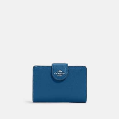 Crossgrain leather Seven credit card slots Bill compartment ID window Snap closure Zip coin pocket 5 (L) x 3 1/2 (H) x 1/2 (W) Style No. 6390 | Outlet Medium Corner Zip Wallet - Blue