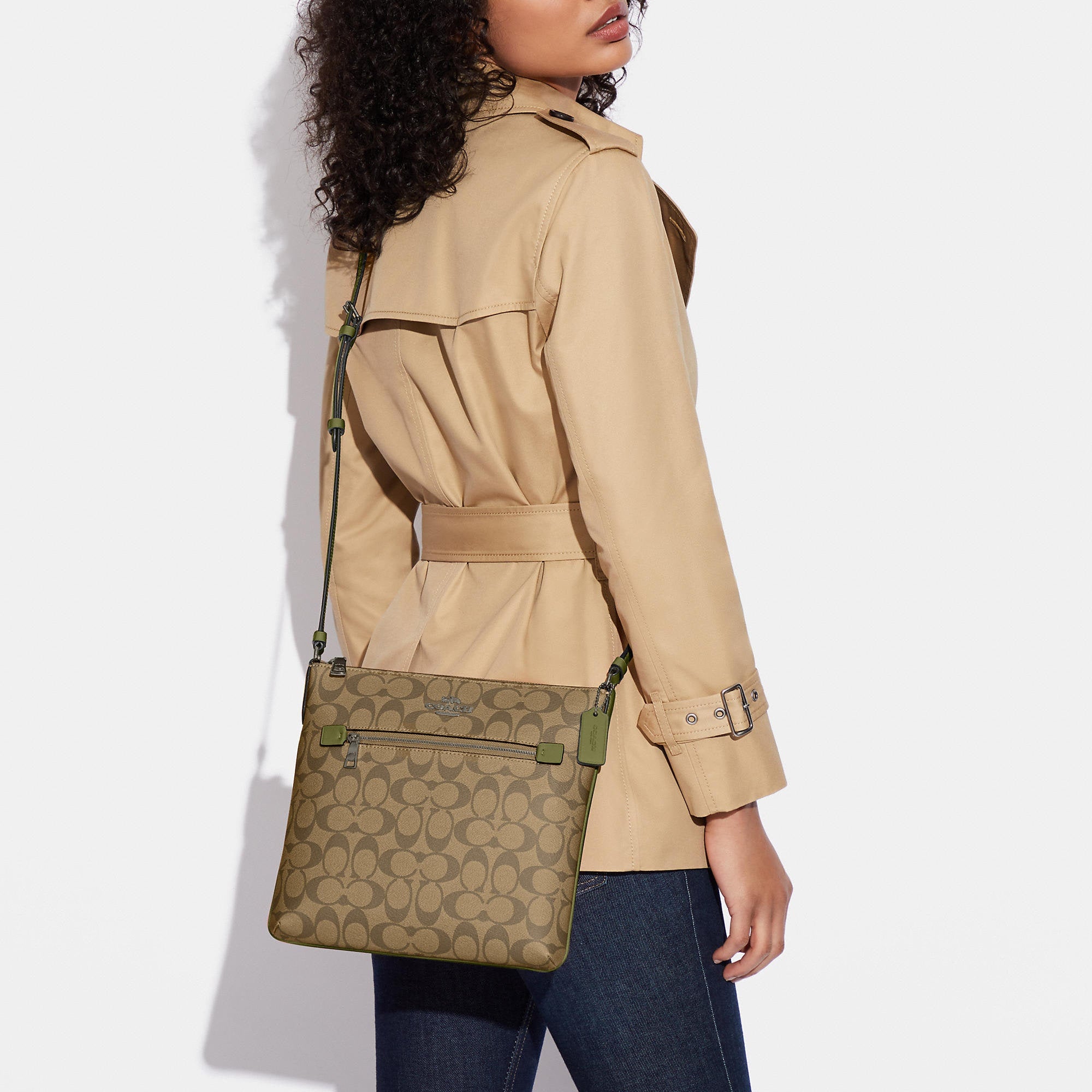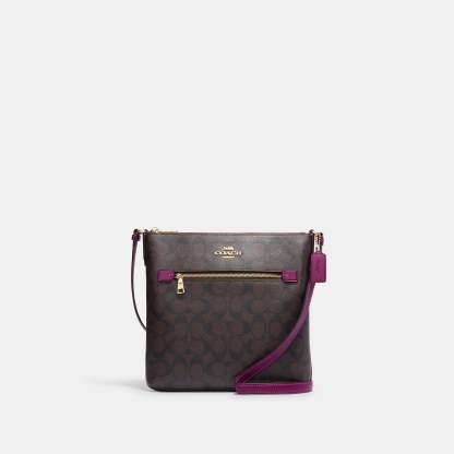Signature coated canvas and smooth leather Inside multifunction pocket Zip-top closure fabric lining Outside zip pocket Adjustable strap with 21 3/4 drop for shoulder or crossbody wear 10 1/4 (L) x 9 3/4 (H) x 1 1/2 (W) Style No. C1554
