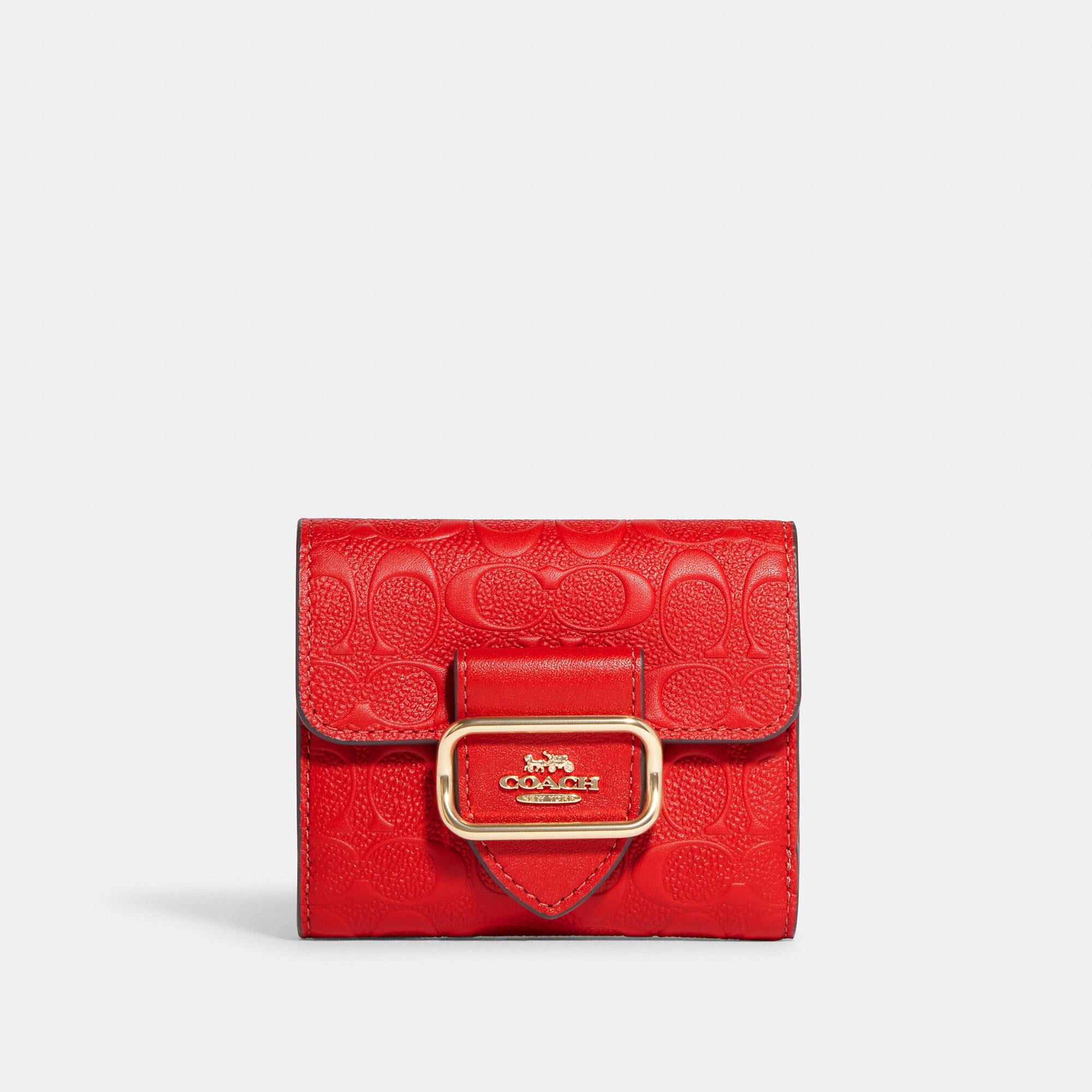 Signature smooth calf leather and smooth leather Six credit card slots Full-length bill compartment Snap closure Outside snap coin pocket 4 1/4 (L) x 3 3/4 (H) Style No. CF855 | Outlet Small Morgan Wallet In Signature Leather - Blue