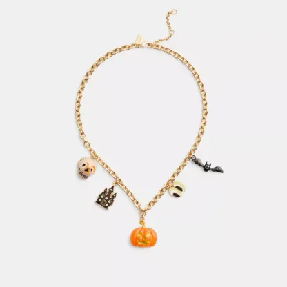 Skull And Pumpkin Charm Necklace